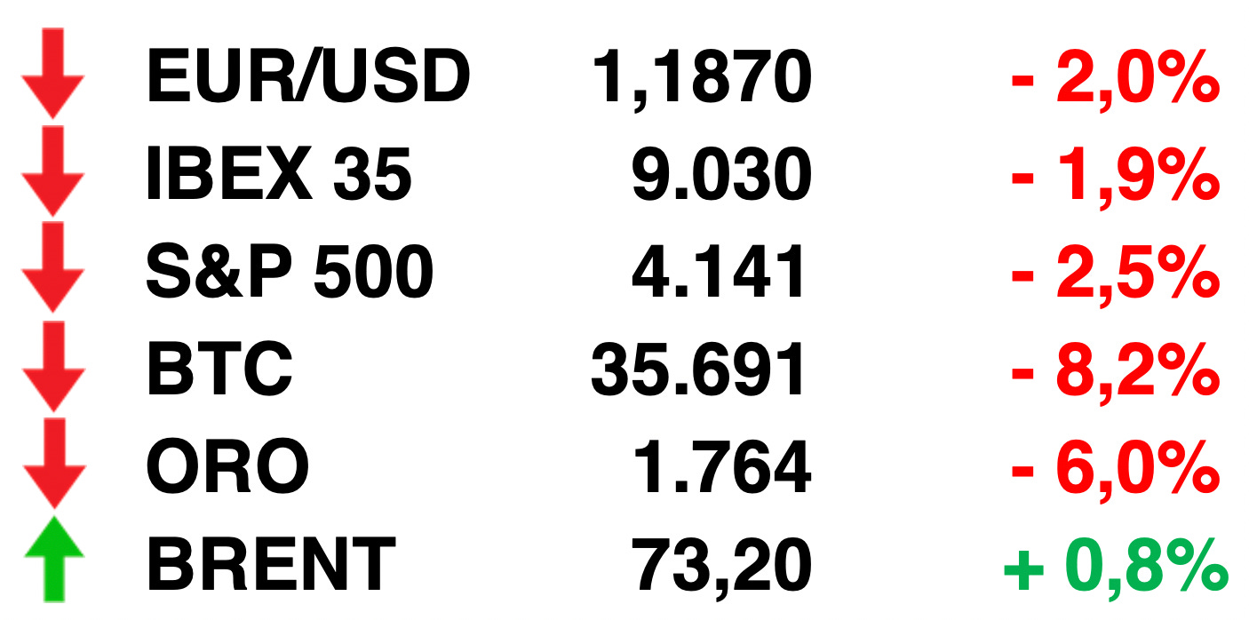 Los responsables de fijar los tipos de interés en Estados Unidos han iniciado un debate sobre la reducción de las compras de bonos. "El presidente de la Reserva Federal, Jerome Powell, dijo en una conferencia de prensa que anticipa dos subidas de tipos para finales de 2023. El dólar se disparó hasta un 0,9% siendo la mayor subida de este año frente al resto de divisas. Mientras tanto los inversores bursátiles temen que una subida de tipos pueda afectar negativamente a los mercados.
