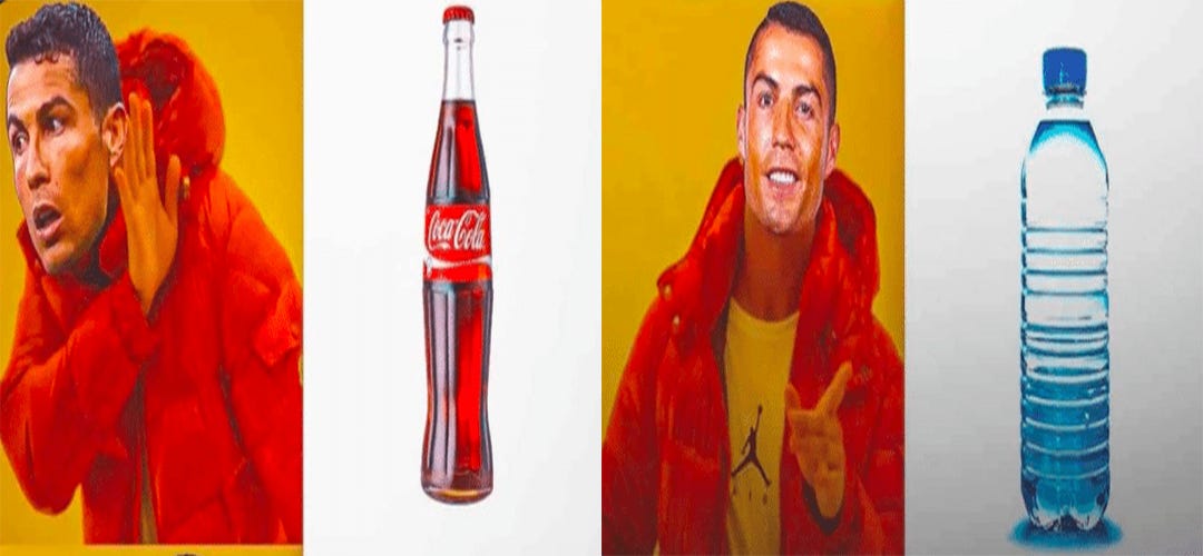 Esta semana no hemos parado de oír cómo Cristiano Ronaldo cambió en una rueda de prensa dos botellas de Coca Cola (KO) por una de agua, moviendo la acción hacia abajo casi un 0.75% (4.000M$). Muchos periódicos comparan la influencia de Ronaldo con la de Elon Musk y las criptomonedas.